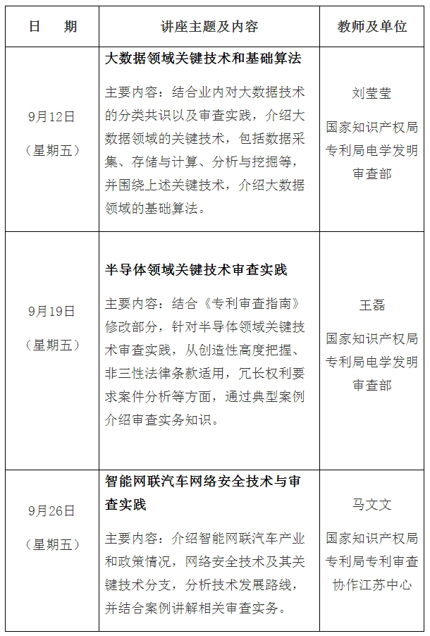 摘要:国家知识产权局专利文献馆将于2025年9月举办“前沿科技领域关键技术与审查实践”专题公益讲座。