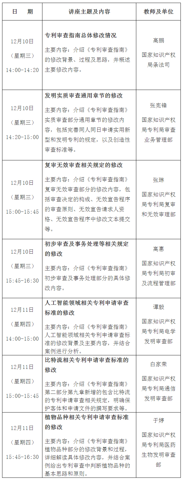 专利文献馆2025年12月公益讲座计划:“专利审查指南最新修改”专题