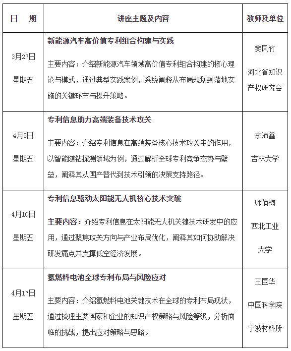 摘要:国家知识产权局专利文献馆将于2026年3-4月举办“关键技术领域专利分析及信息利用”专题公益讲座。