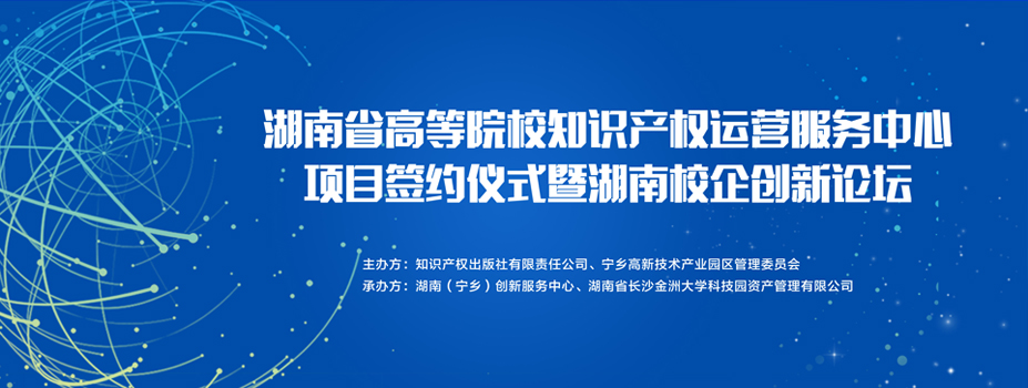 10月26日,由知识产权出版社有限责任公司和宁乡高新技术产业园区管理委员会联合举办的“湖南省高等院校知识产权运营服务中心签约仪式暨湖南校企协作创新论坛”在湖南省长沙市宁乡高新技术产业园区顺利举办。
