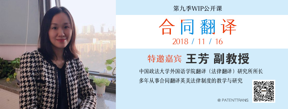 第九季WIP公开课将于11月16日正式开播,将由中国政法大学外国语学院翻译(法律翻译)研究所所长王芳,为大家讲解合同翻译。