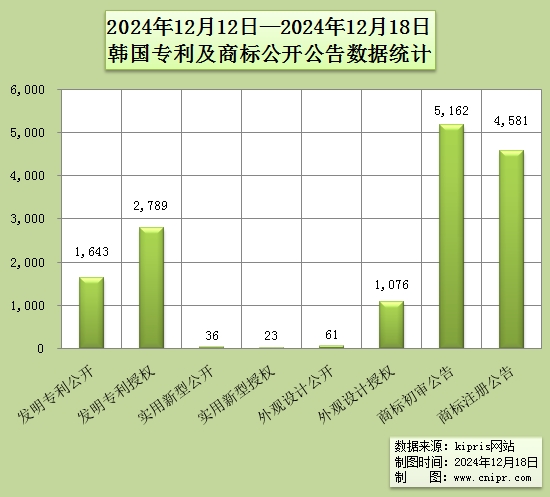 2024年12月12日—2024年12月18日韩国专利及商标公开公告数据统计