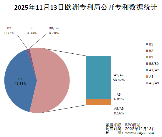 摘要:2025年11月13日,欧洲专利局(EPO)公开A类以及B类专利4978件。