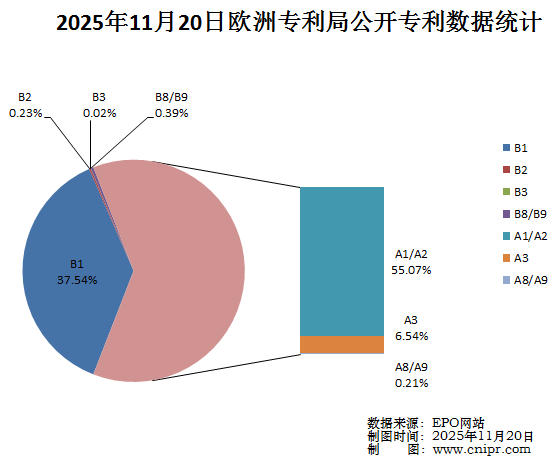 摘要:2025年11月20日,欧洲专利局(EPO)公开A类以及B类专利5615件。