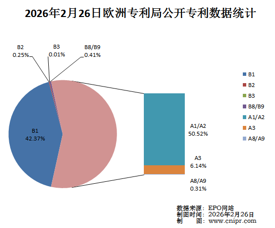 摘要:2026年2月26日,欧洲专利局(EPO)公开A类以及B类专利6875件。