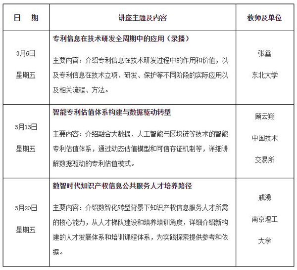专利文献馆2026年3月公益讲座计划:“专利信息应用与人才培养”专题