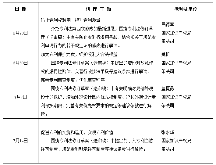 “专利法第四次修改”专题公益讲座(2017年6月23日—7月14日)