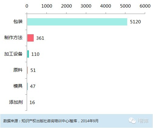 月饼专利中,涉及包装材料的专利占89.7%,月饼制作方法的占6.3%,加工设备占1.9%,原料、模具和添加剂所占比例不足1%。