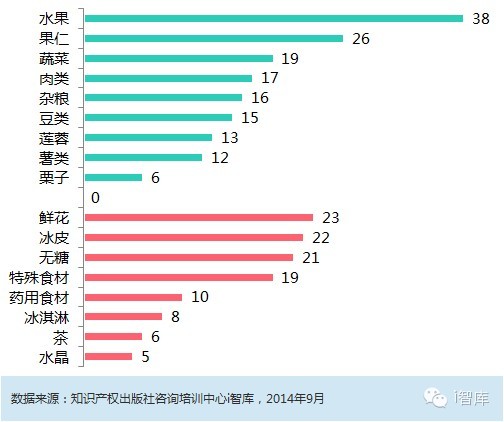 月饼的种类口味繁多,目前主要有四大派别:广式月饼、京式月饼、苏式月饼和潮式月饼。通过专利分析,小i发现月饼中涉及到的馅料种类很多,果蔬、果仁、鲜花、肉类、杂粮、豆类、莲蓉、薯类等多种食材均可制成月馅料心。