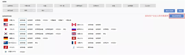 数据库包括系统预设的数据库组合,用户可以选择自定义组合并命名保存为常用库。