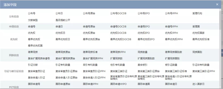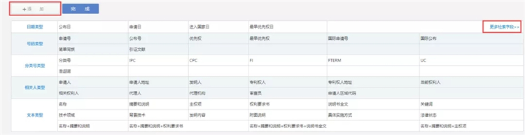 点击“添加”、“更多检索字段“可以查看所有检索字段。
