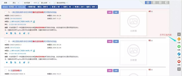 至3月31日,DIInspiro中国知识产权大数据与智慧服务系统向全国公众免费提供高级账号(即VIP账号),为公众查询新型冠状病毒肺炎相关专利情报提供便利。新用户请登录网址:http://www.zldsj.com/,并点击“在线注册”,后台审核通过后,24小时内开通VIP权限。