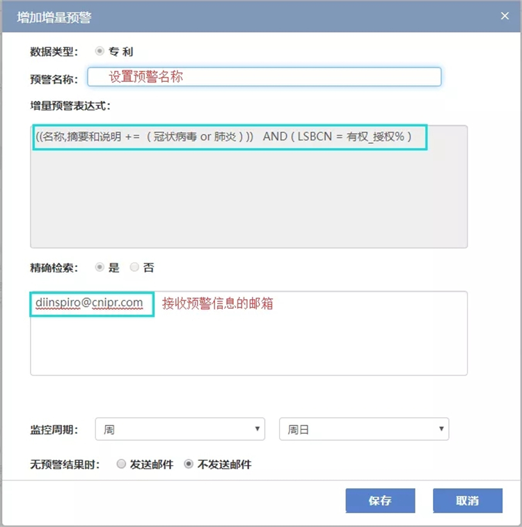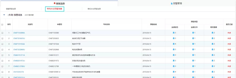 专利预警包括状态预警和增量预警,设置专利状态预警有几种方式: