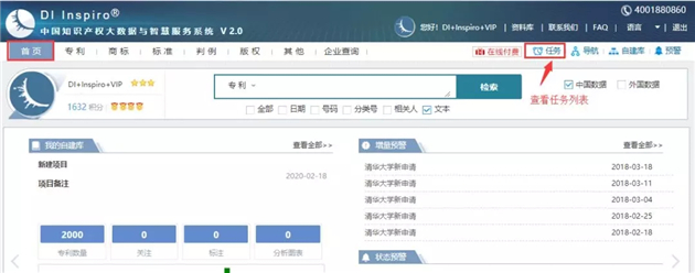 至3月31日,DI Inspiro中国知识产权大数据与智慧服务系统向全国公众免费提供高级账号(即VIP账号),为公众查询新型冠状病毒肺炎相关专利情报提供便利。新用户请登录网址:http://www.zldsj.com/,并点击“在线注册”,后台审核通过后,24小时内开通VIP权限。