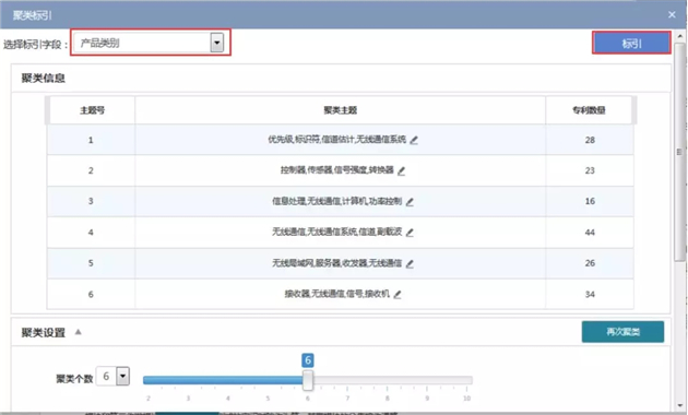 聚类分析,将项目中的数据通过技术关键词进行聚类,并以热力图的方式展示聚类结果,用户可以对聚类词进行设置,对聚类主题的数量进行设置。