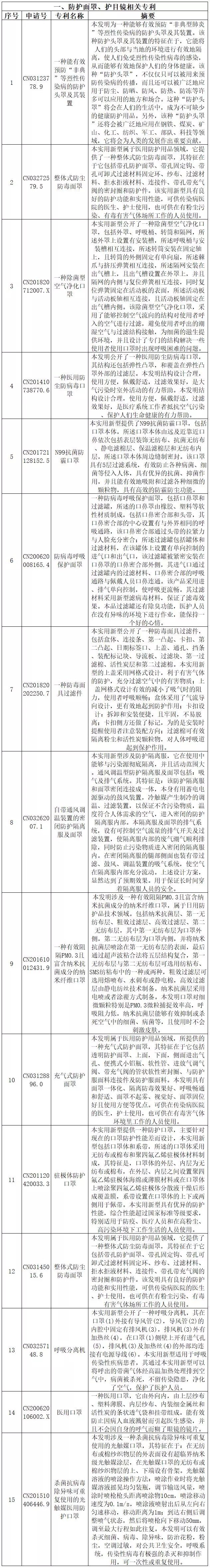 在此次疫情防护工作中,医用口罩、防护服、护目镜等防护装备能够在人与外界环境的交互过程中构建一层屏障,有效阻挡新冠状病毒的传播。呼吸防护用品在疫情防治工作中扮演着及其重要的角色。本期将遴选出呼吸防护用品相关的专利,主要内容包括:防护面罩/护目镜、防护服及手套鞋袜、其它防护用品三个方面。