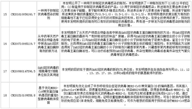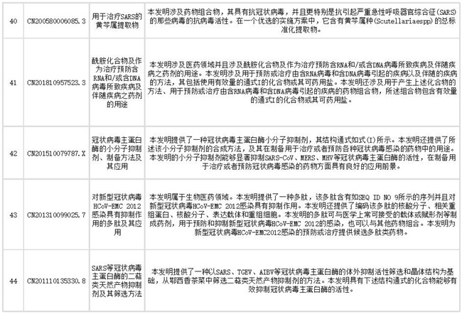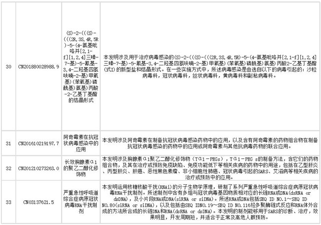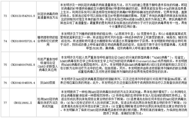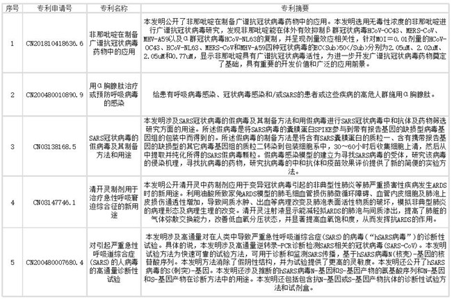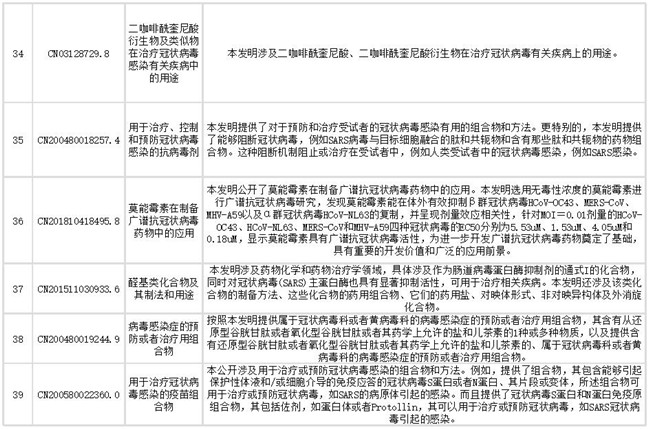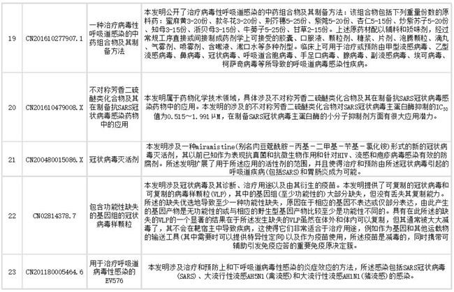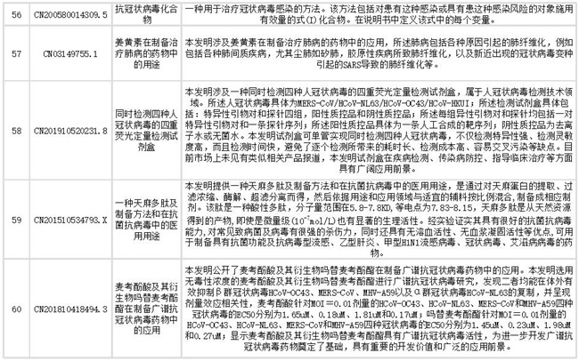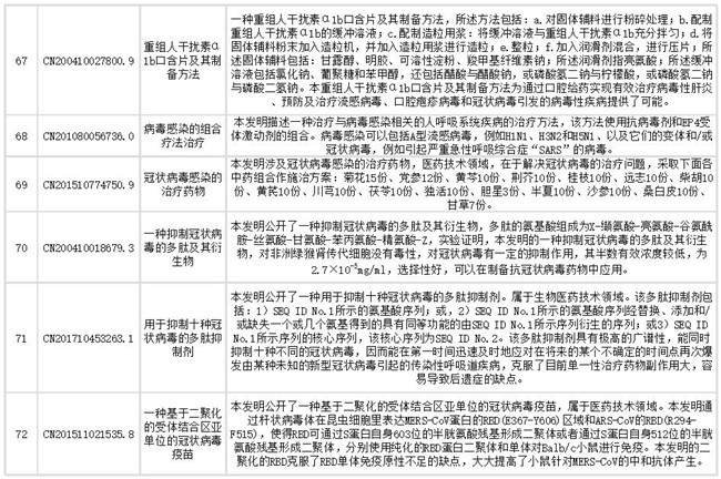 下文列出了抗冠状病毒药物部分相关专利信息,想获取更多相关专利情报及专利全文信息,请点击文末链接查看。