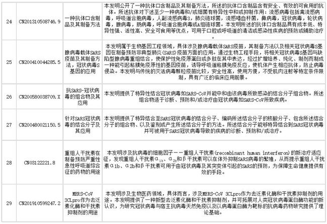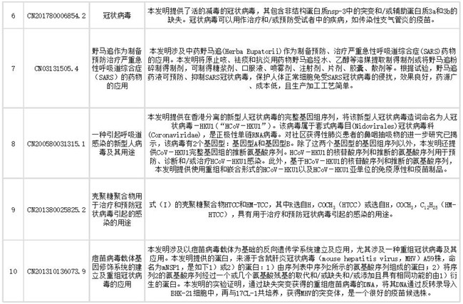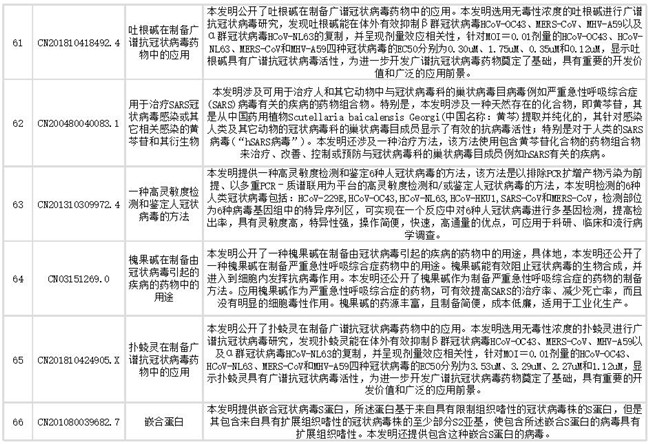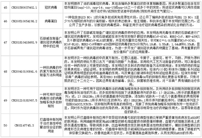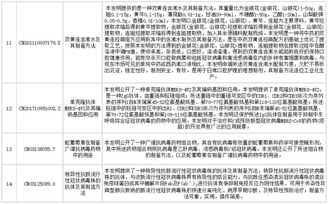 声明:本公众号提供的专利信息仅供疫情的科研、临床和日常防护参考借鉴,不作为推荐的治疗方案。
