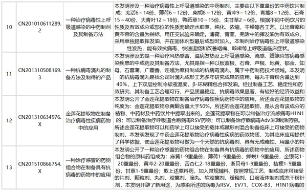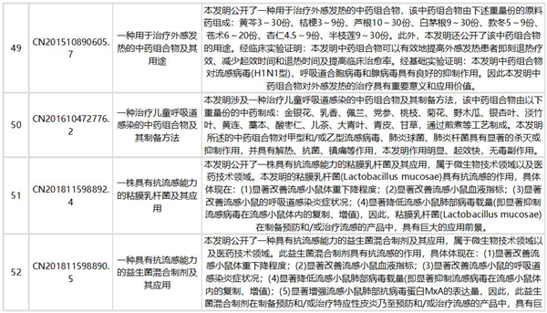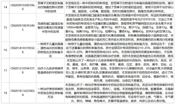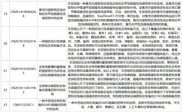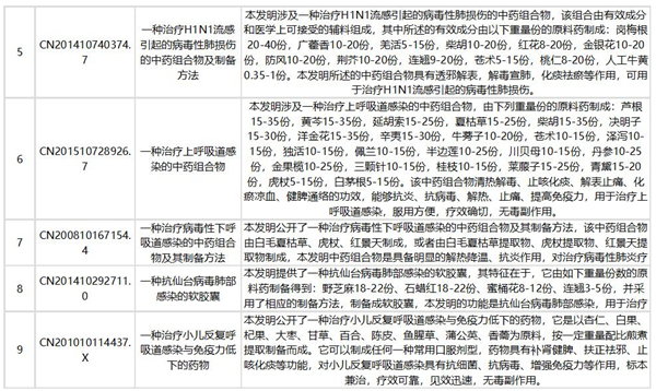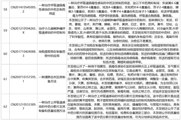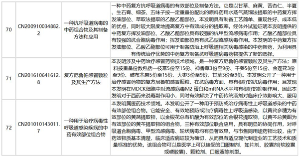 下表列出了中医药预防治疗部分相关专利信息,想获取更多中医药防治专利情报及专利全文信息,请点击文末链接查看。