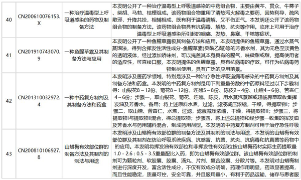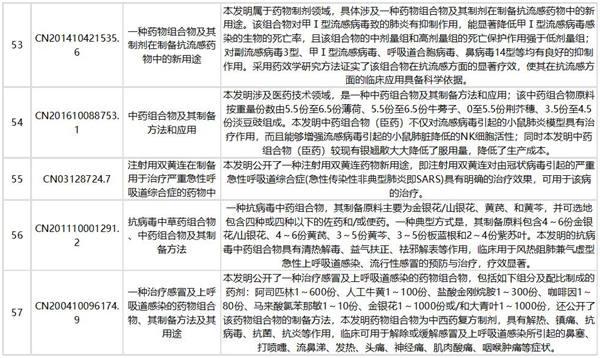 声明:以下专利信息仅供疫情的科研、临床和日常防护参考借鉴,不作为推荐的治疗方案。