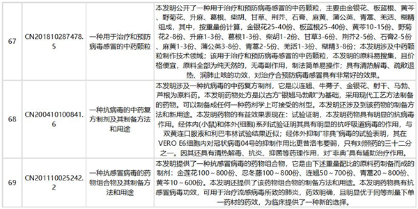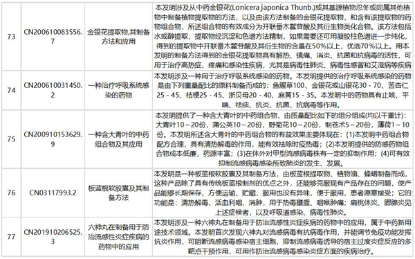 鉴于中医药在SARS治疗中发挥的重要作用以及在新冠病毒防控中可能发挥的作用,我们第一批公布的新冠肺炎防治专利,就从中医药防治开始。
