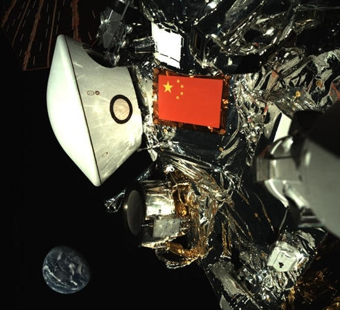 2025年10月1日,国家航天局发布行星探测工程天问二号任务探测器在轨飞行期间获取的探测器与地球合影图像。新华社发(国家航天局供图)
