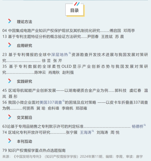 《中国发明与专利》2024年第11期目录