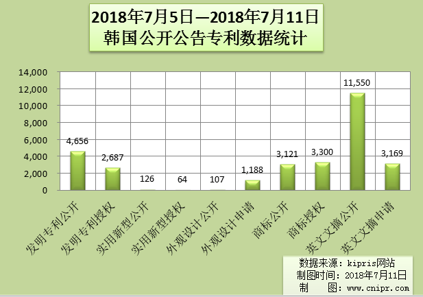 2018年7月5日—2018年7月11日韩国公开公告专利数据统计