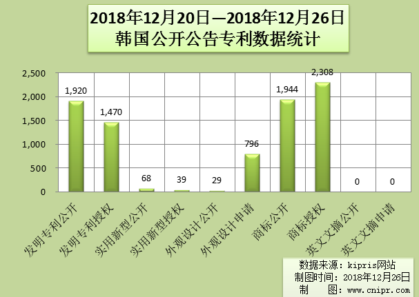 2018年12月20日—2018年12月26日韩国公开公告专利数据统计