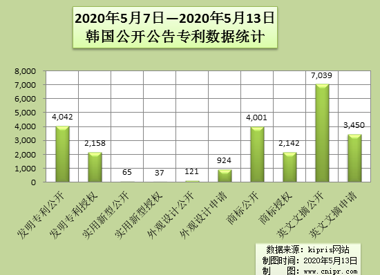 2020年5月7日—2020年5月13日韩国公开公告专利数据统计