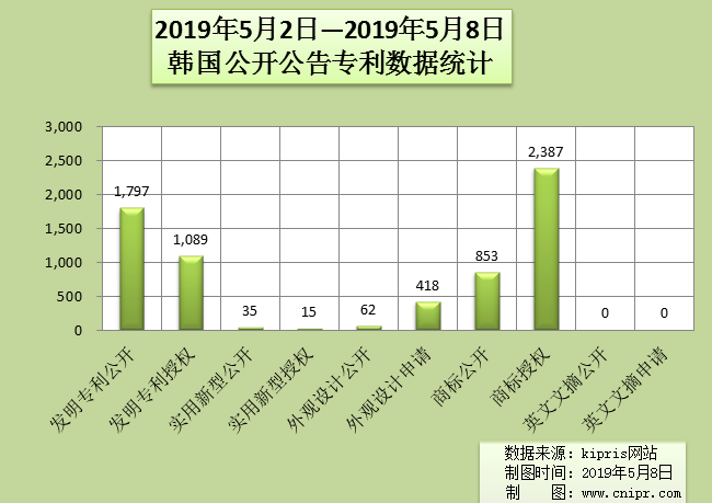 2019年5月2日—2019年5月8日韩国公开公告专利数据统计