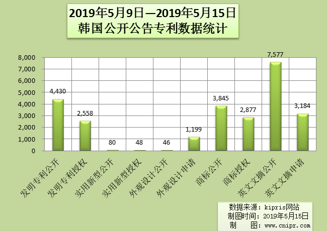 2019年5月9日—2019年5月15日韩国公开公告专利数据统计