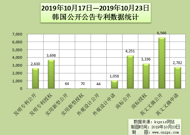 2019年10月17日—2019年10月23日韩国公开公告专利数据统计