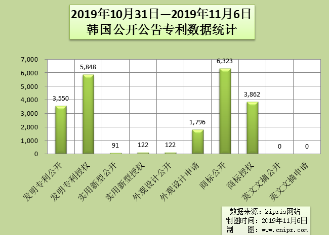 2019年10月31日—2019年11月6日韩国公开公告专利数据统计