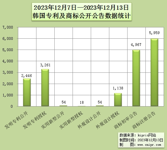 2023年12月7日—2023年12月13日韩国专利及商标公开公告数据统计