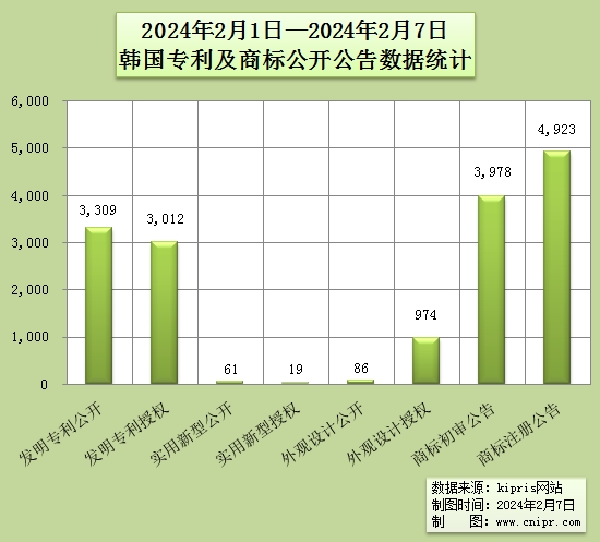 2024年2月1日—2024年2月7日韩国专利及商标公开公告数据统计