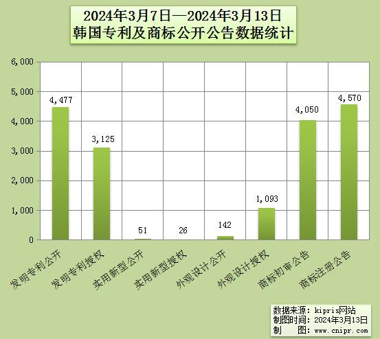 2024年3月7日—2024年3月13日韩国专利及商标公开公告数据统计