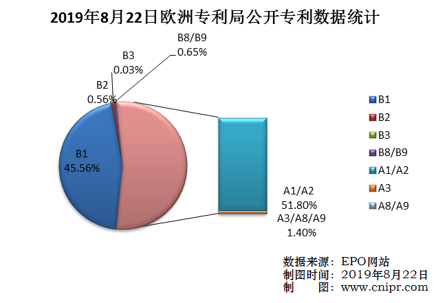 摘要:2019年8月22日,欧洲专利局(EPO)公开A类以及B类专利5865件。