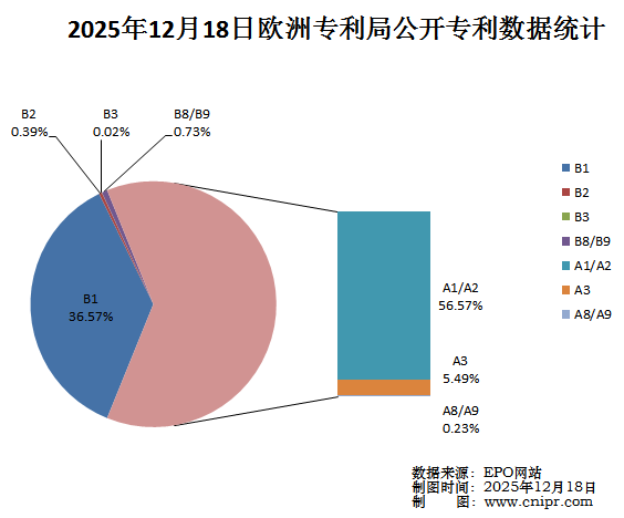 摘要:2025年12月18日,欧洲专利局(EPO)公开A类以及B类专利6155件。