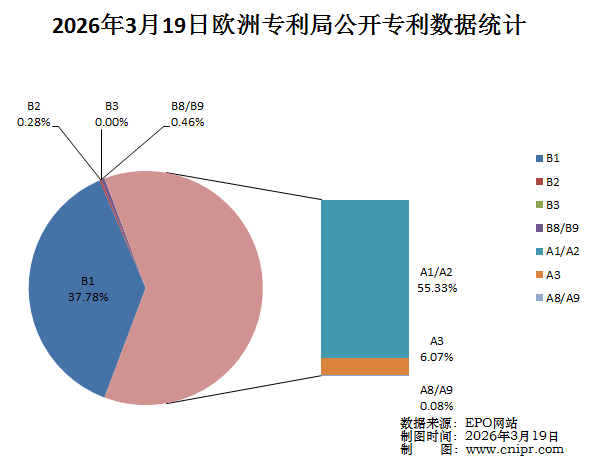 摘要:2026年3月19日,欧洲专利局(EPO)公开A类以及B类专利6537件。