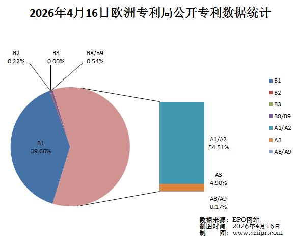 摘要:2026年4月16日,欧洲专利局(EPO)公开A类以及B类专利6346件。